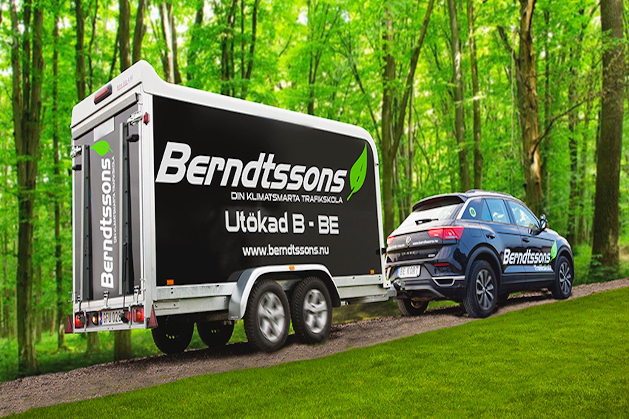 På vårt systerbolag Berndtssons Trafikskola i Ängelholm gör du både den teoretiska och praktiska delen. Ta gärna kontakt med Berndtssons Trafikskola på 0431-80850 eller besök deras hemsida www.berndtssons.nu för mer information. Den praktiska utbildningen sker med VW T-Roc samt vårt lättkörda boggisläp som är anpassat för detta.